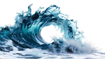 A powerful and towering ocean wave crashes and breaks with incredible force. Isolated