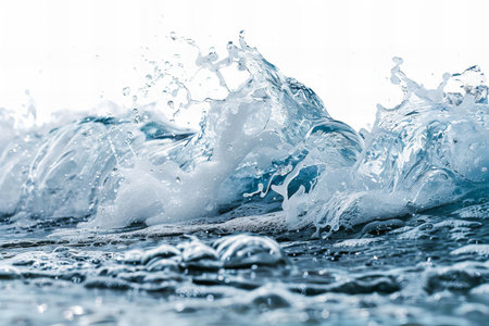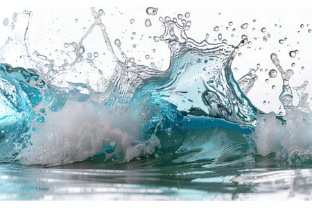 Water splashing in slow motion against a clear background, clean and energizing scene with copy space