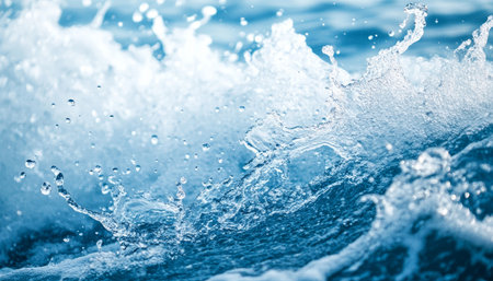 A clean, minimalistic background image of water with small waves and splashes. Generated by artificial intelligence.