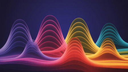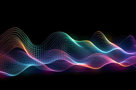 Stunning abstract image showcasing vibrant waves of light in a variety of colors. Perfect representation of sound frequencies, ideal for digital art enthusiasts and creative projects.