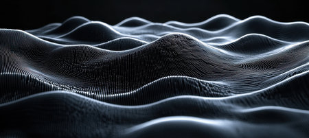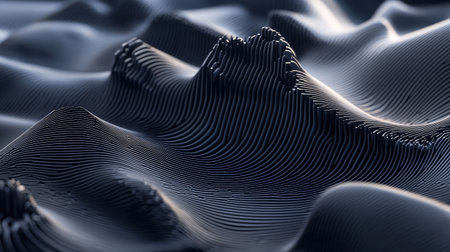 Captivating abstract landscape featuring wavy lines and dynamic textures, presenting a modern and sleek visual aesthetic inspired by nature and creativity.