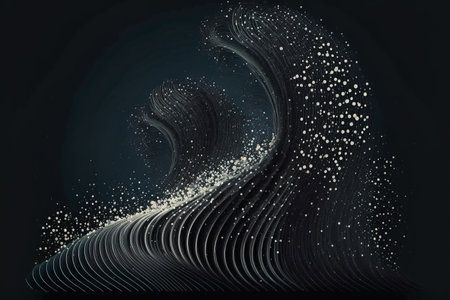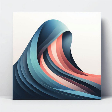 A stylized illustration of a wavy, ribbon-like design against a gradient blue background