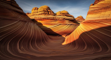 A vibrant, rolling sea crest erupts with force, its deep blue hues contrasted by a luminous sky, embodying the raw energy and mesmerizing allure of the ocean.
