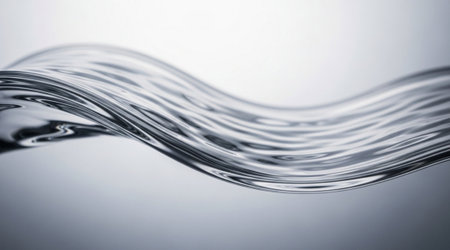 Clean minimalist wave flowing across gray background. Smooth elegant water ripple effect texture. Transparent liquid motion concept design.