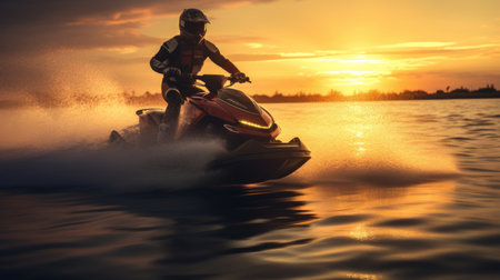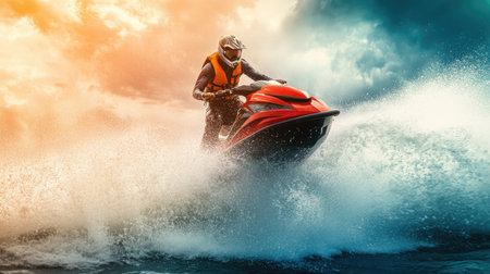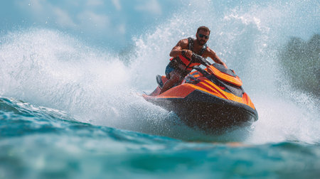 An action-packed image featuring engaging in thrilling water sports such as jet skiing. Concept the spirit of adventure and summer excitement. Generative AI