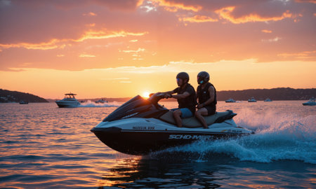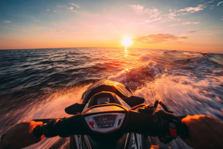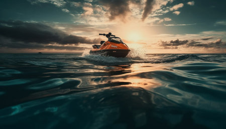 cruising in the sea on a jet ski during sunset