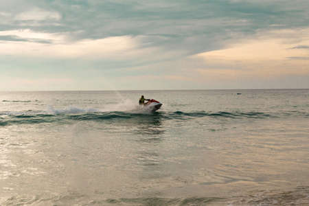 HUA HIN, THAILAND - MAY 28, 2017: Unidentified man driving jet ski activities on the sea at Hua hin beach of Thailand.