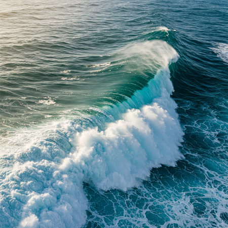 Evening Serenity, Aerial View of Blue Ocean Waves