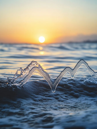 Gentle ocean waves form a heartbeat line under a vibrant sunset, showing the deep connection between life and the water surrounding it.