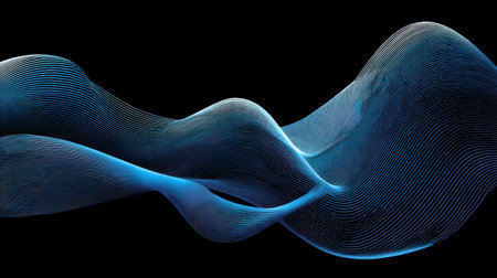 This captivating image showcases abstract blue wave forms with smooth lines on a dark background, embodying movement and fluidity perfect for artistic designs.