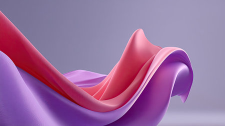 This captivating abstract image features a flowing wave of pink and blue fabric, creating a sense of elegance and movement against a soft backdrop. Perfect for artistic projects.