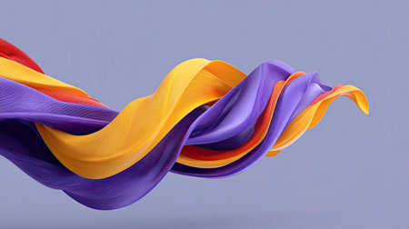 Vibrant ribbons in purple, orange, and yellow swirl gracefully against a soft purple backdrop, offering an elegant and modern abstract design perfect for artistic projects.