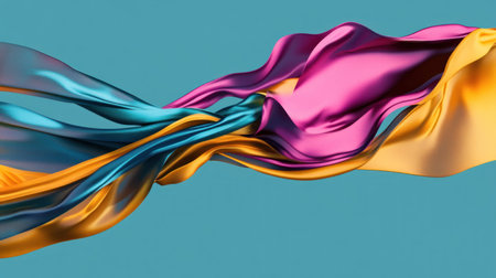 Colorful Waves of Fabric Flowing Gently Under Soft Light in an Artistic Setting