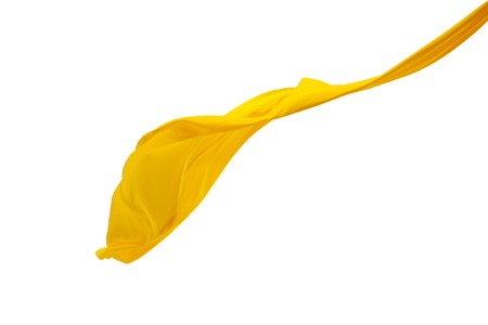 Smooth elegant transparent yellow cloth separated on white background.