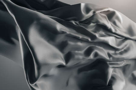 Beautiful shiny black cloth on white backdrop. Design, fabric and landing page concept. 3D Rendering