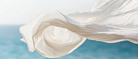 Minimalist summer scene with flowing linen and ocean breeze, capturing natural elegance and coastal style.