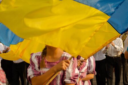 Kiev, Ukraine August 29, 2020: The flag of Ukraine is the largest in the country