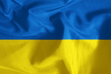 Ukrainian flag with fabric texture background. National flag of Ukraine