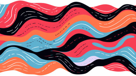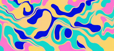 A vibrant abstract pattern featuring wavy lines of various colors, including pink, orange, yellow, blue, and black, against a white background. The colors blend together seamlessly, creating a dynamic and visually engaging design.