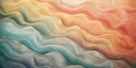 A non-seamless abstract design with peach fuzz and chambray blue flowing together in waves, creating a relaxing atmosphere with soft and blended textures.