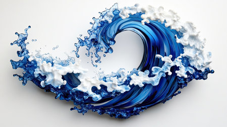 This vibrant abstract representation of an ocean wave captures the dynamic movement of water in striking blue and white tones, perfect for artistic projects.