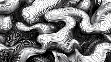 Captivating black and white abstract wave pattern showcasing flowing lines in dynamic movement, ideal for modern artistic backgrounds and creative design inspiration.