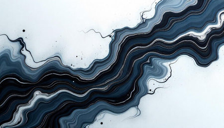 This abstract artwork features striking flowing lines in monochrome, set against a textured blue background. It embodies dynamic movement and elegance, making it perfect for creative projects.