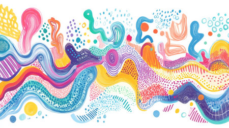 Creative doodle art header featuring a variety of whimsical shapes and textures, including swirls, zigzags, and dots, all in vibrant colors against a white background.