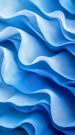 Luxurious blue fabric flows effortlessly, showing smooth waves and subtle textures.