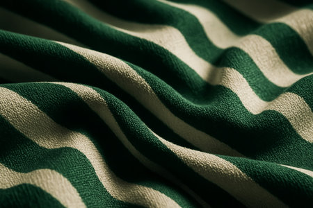 Green and white striped fabric cloth texture background. Close up. Toned.