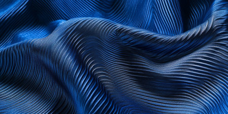Exploring the lush textures and deep hues of denim fabric, this macro shot highlights the elegant folds and movement, inviting viewers into a world of textile artistry and craftsmanship.