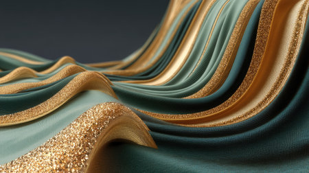 A stunning close-up view of elegant fabric featuring rich teal and shimmering gold stripes, creating a sophisticated and luxurious atmosphere perfect for design projects.