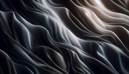 Discover the beauty of black fabric in this close-up image, showcasing smooth textures and flowing waves, perfect for fashion, interior, or artistic projects.