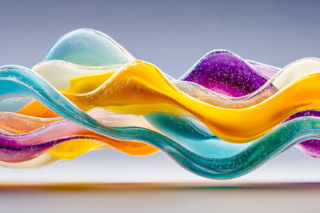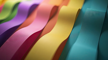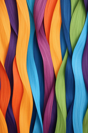 Vibrant waves of translucent material create an engaging visual flow, showcasing colors and textures in a captivating arrangement.
