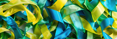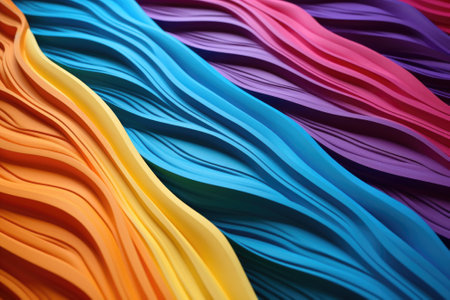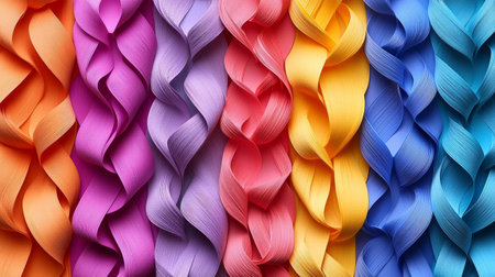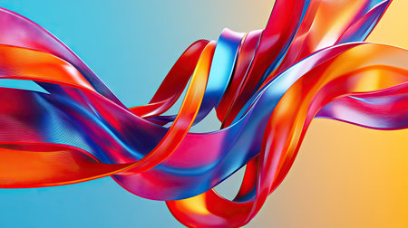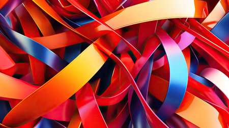 Vibrant silk ribbons in shades of pink, blue, red, orange, and yellow seamlessly intertwine, creating a luxurious and dynamic pattern. perfect for backgrounds, fashion projects, or elegant design inspirations. Generative AI