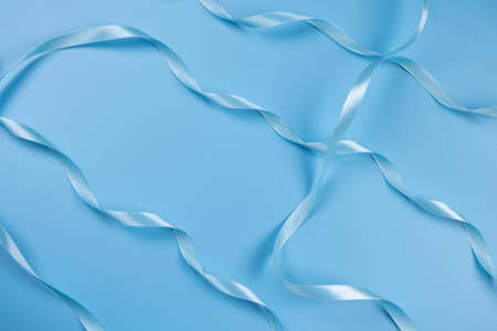 blue background with satin ribbons, concept of boy and newborn birthday celebration or blue party.