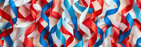Presidents' Day. Stylized satin ribbons in red, white, and blue colors elegantly arranged on a clean, textured surface