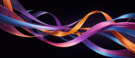 AI Generated. Abstract Colorful Silk Ribbons Flowing in Dynamic Composition