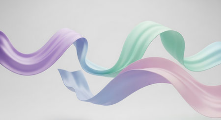Elegant ribbons in soft pastel shades flow gracefully across a simple beige background. This image captures beauty, motion, and creativity, ideal for various design projects.