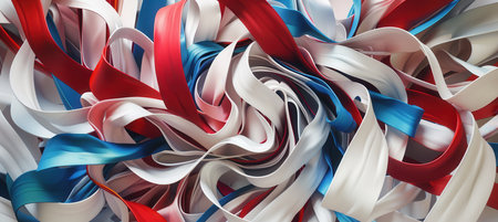 Red, white and blue ribbons background. 3d rendering, 3d illustration.