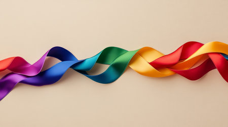 Ribbons in rainbow colors neatly arranged in a row, representing diversity and inclusion