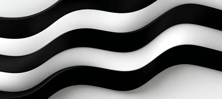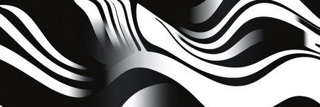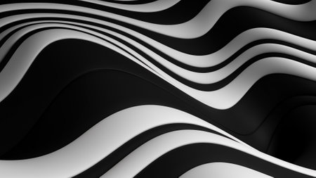 An abstract image of black and white waves, creating a dynamic sense of motion and aesthetic harmony.