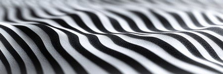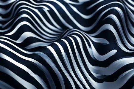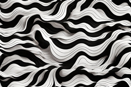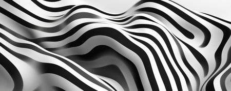 Wavy black and white stripes create an abstract textured background, enhancing modern and minimalist designs with a dynamic flow and elegant contrast for various applications