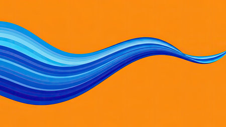 Abstract blue wave on orange background. Vector illustration. Clip-art