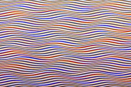 Layered, wavy lines in a vibrant multicolored palette of yellow, red, blue, and green create a textured abstract pattern with subtle shadows and a flowing appearance.