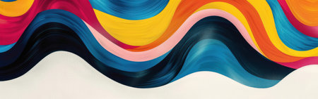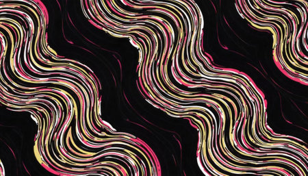A vibrant abstract pattern featuring wavy lines of various colors, including pink, orange, yellow, blue, and black, against a white background. The colors blend together seamlessly, creating a dynamic and visually engaging design.