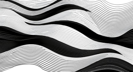 A captivating abstract background featuring a dynamic interplay of black and white wavy lines, creating a sense of movement and modern elegance.