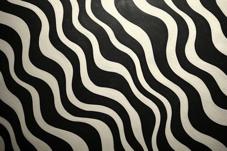 Monochrome striped wall with zebra pattern created by wavy lines, abstract black and white background design concept