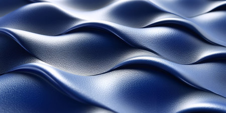 Abstract Blue Wavy Leather Texture Background Design 3D Art Silk Waves Curve Shiny Image