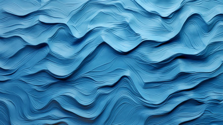 This artistic rendering displays an abstract landscape of undulating, wave-like forms, primarily in rich shades of blue. The scene is characterized by rhythmic peaks and valleys that create a strong sense of dynamic movement and flow. Fine, textured details enhance the depth and suggest a layered or granular construction, contributing to the visual interest of the blue gradient transitions. This versatile backdrop evokes deep ocean currents, topographical patterns, or advanced digital data visualizations. It provides a modern, serene, yet powerfully aesthetic foundation for many creative projects.